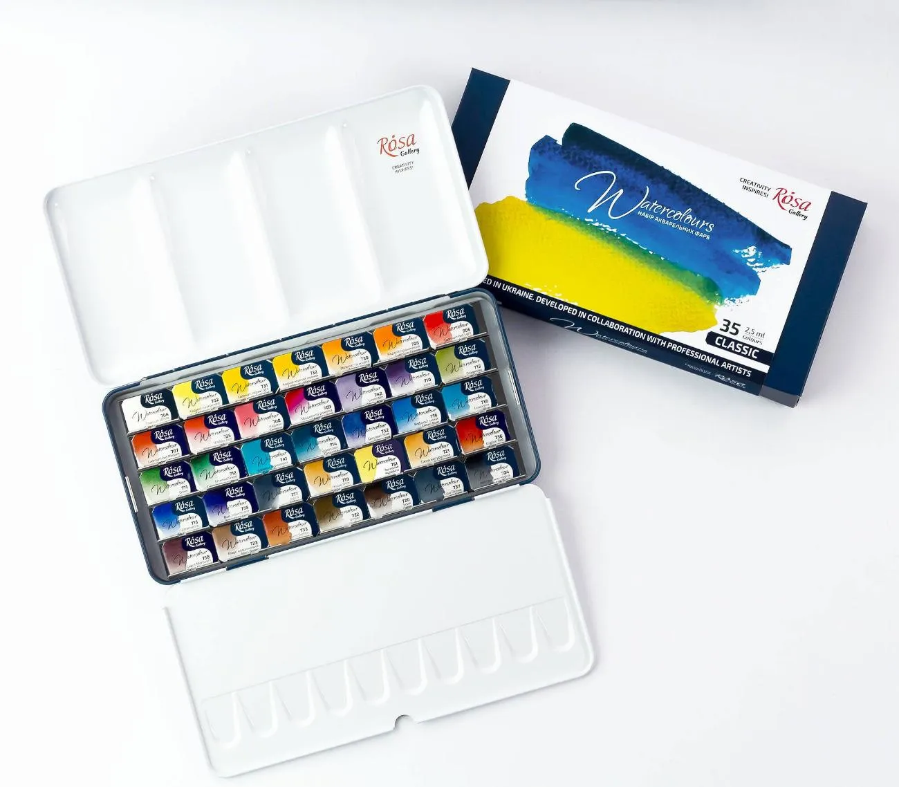 Upptäck det professionella Rosa Gallery Akvarellsetet i ett elegant metalletui, innehållande 35 högpigmenterade färger i praktiska 1/1-koppar. Detta set är designat för konstnärer som söker akvarellfärger av högsta kvalitet, perfekt för att skapa levande och detaljerade verk.Rosa Gallerys akvarellfärger är kända för sina rika pigment och smidiga applicering. Färgerna har utmärkt ljusäkthet och kan enkelt blandas för att skapa en oändlig variation av nyanser. Det kompakta metalletuiet gör det lätt att ta med sig setet vart du än går, vilket gör det idealiskt för både arbete i studion och plein air-målning utomhus.Med 35 vackra färger ger detta akvarellset dig allt du behöver för att utforska och fördjupa dig i akvarellteknik, från transparenta wash till djupare, mer intensiva toner. Perfekt för både amatörer och professionella konstnärer som vill ha ett komplett och portabelt färgset.