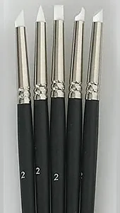 Verktyg med formade silikonspetsar för att lägga ut och bearbeta färg, strukturpasta, keramiklera mm.Setet innehåller 5 olika utformade spetsar i diameter 7mmLängd 20cm.